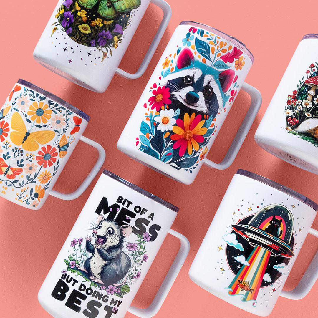 Heading out? Put a lid on it. Insulated mugs keep beverages cold, hot, and safe from spillage for happy travels.