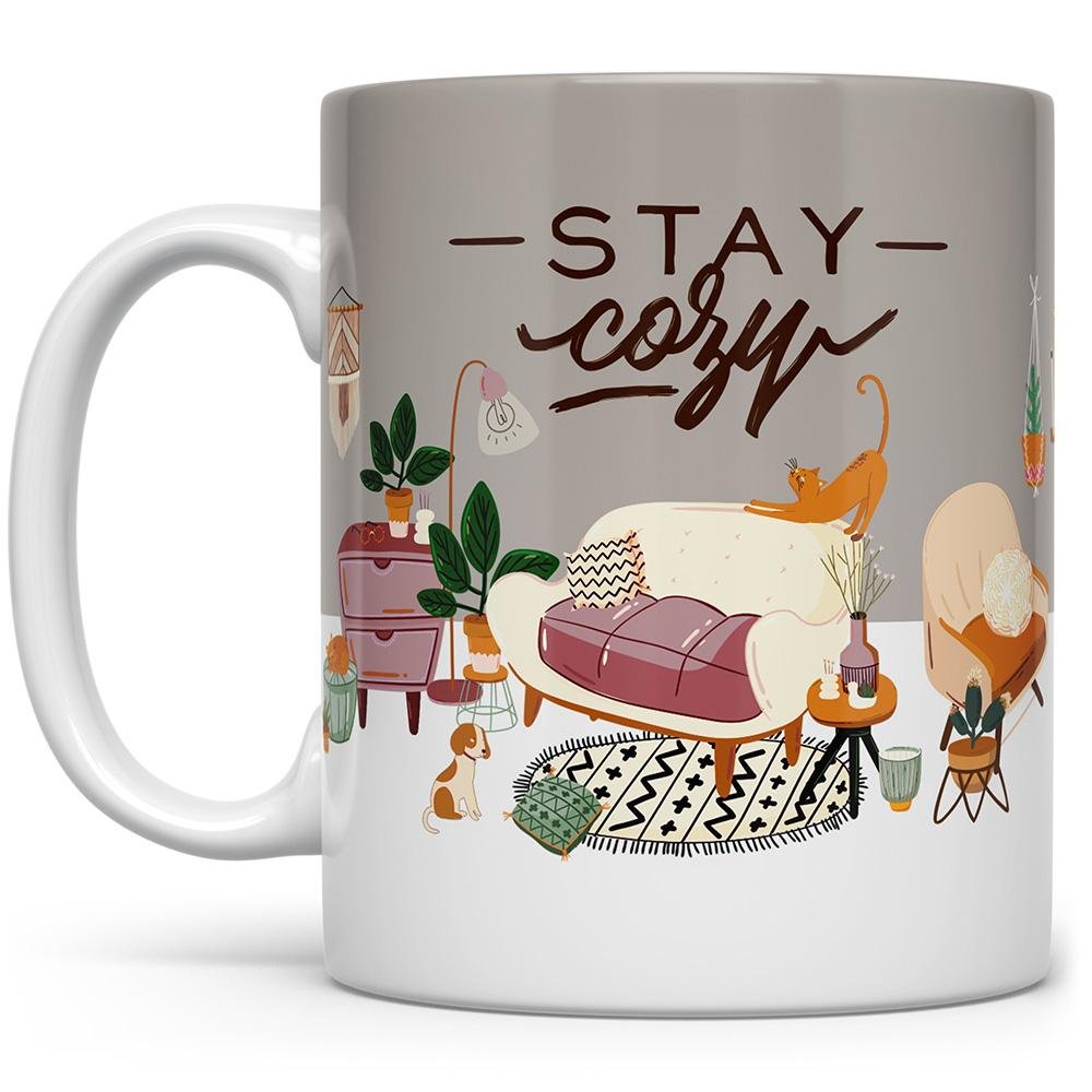 Is there a better feeling than curling up on the couch with your favorite book? Coziness is a vibe, and we’re absolutely here for it. Our Stay Cozy mug embraces our love of hanging plants, soft and fluffy pillows, and your favorite pets. The only thing missing is your favorite coffee mug. That is, until now!