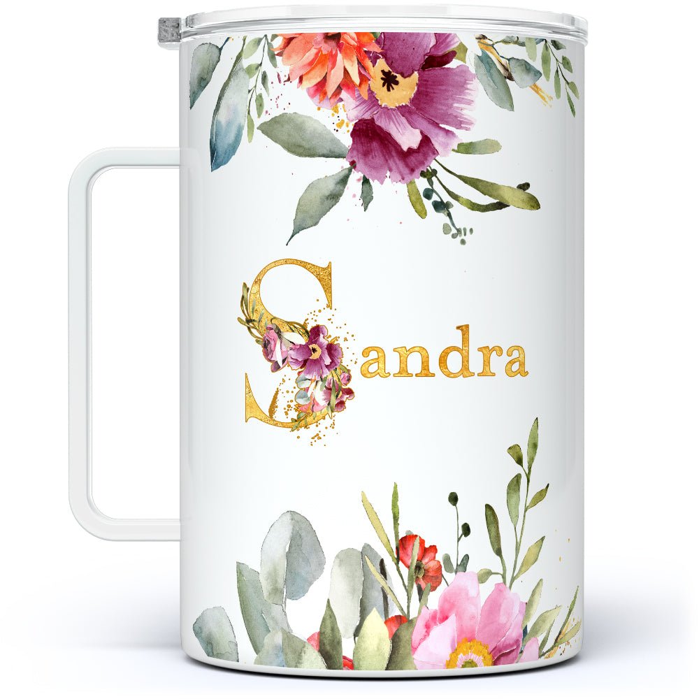 Personalized Name Floral Insulated Travel Mug - Loftipop