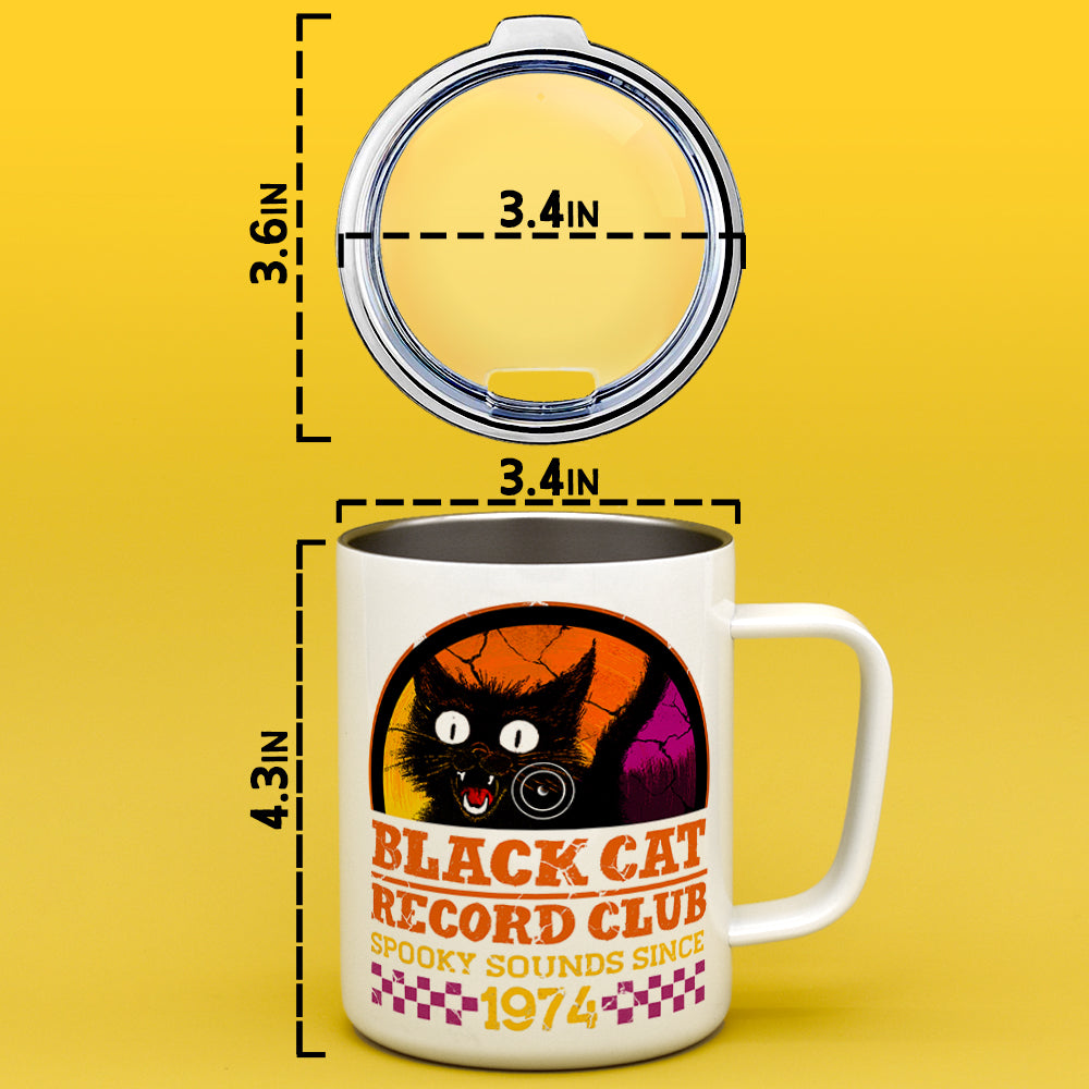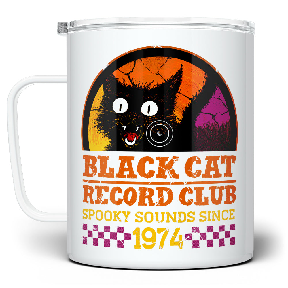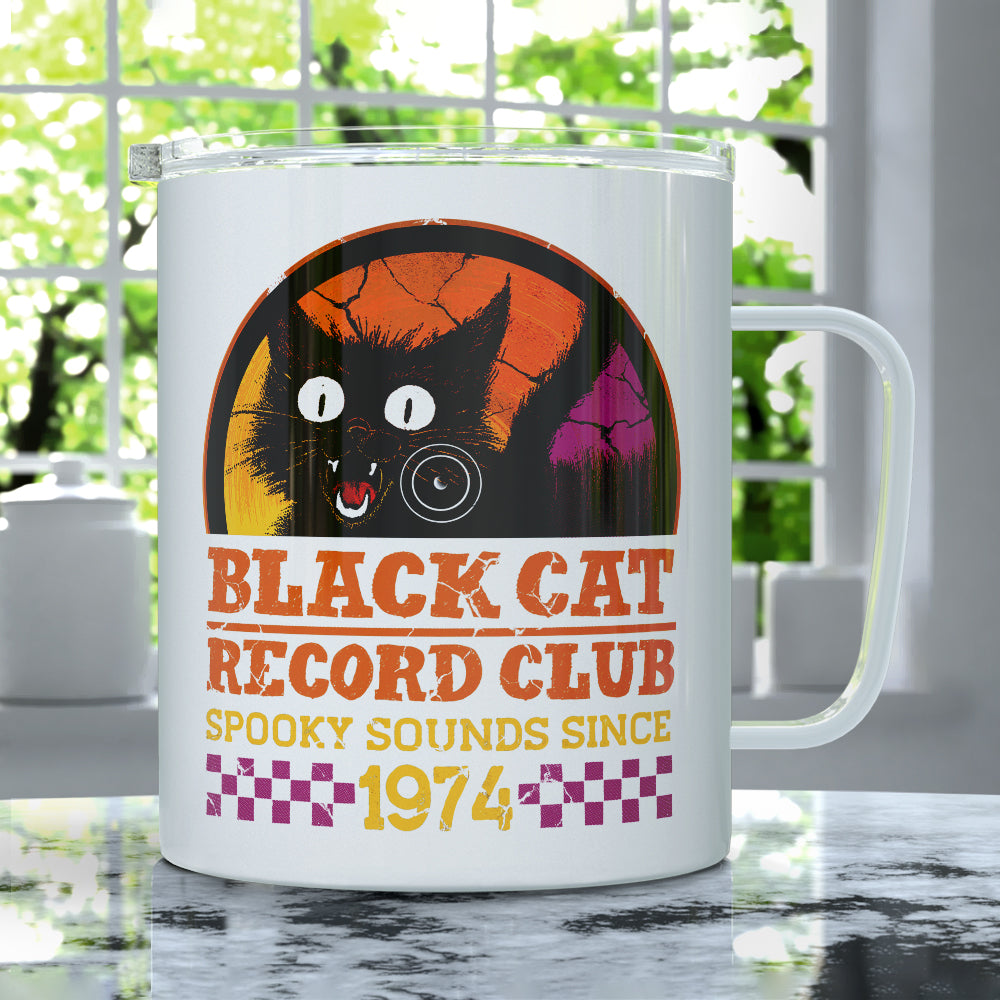 Sip your morning brew with a side of spooky nostalgia. The Black Cat Record Club Mug features a vintage-inspired design with a mysterious black cat surrounded by a vinyl record and retro typography. Perfect for coffee, tea, or cocoa, this mug combines feline charm, music vibes, and Halloween flair in one timeless piece—ideal for record collectors, cat parents, and lovers of cozy fall aesthetics.