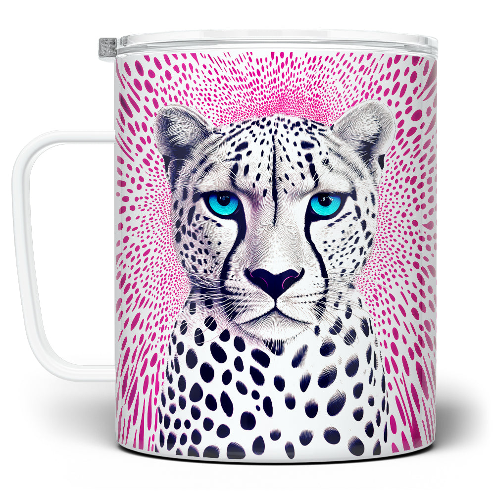 Take a walk on the wild side with the Cheetah Insulated Travel Mug! The vibrant cheetah design is sure to make you stand out while enjoying your favorite drink on the go. Available in 12oz and 18oz sizes, this fun and cool wildlife mug will keep your drink at the perfect temperature.
