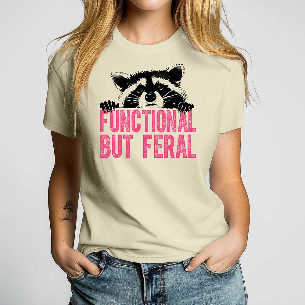 Unleash your inner chaos critter with our "Functional But Feral" raccoon tee – the perfect blend of productivity and pandemonium. Whether you're managing to survive the 9-to-5 grind or thriving in organized chaos, this shirt speaks your truth with a wink and a growl.