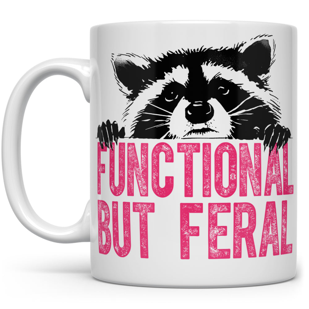 Embrace your wild side with our Functional But Feral Raccoon Mug. Perfect for those who maintain a put-together appearance while harboring chaotic energy underneath. Available in 11oz or 15oz sizes, this durable ceramic mug celebrates your dual nature – professionally capable yet delightfully untamed. Your morning coffee has never felt so authentically you.