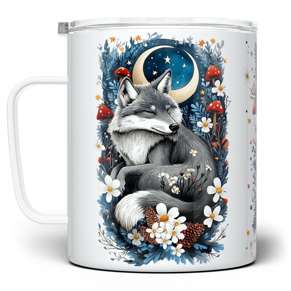 Woodland Winter Sleeping Wolf Insulated Travel Mug - Loftipop