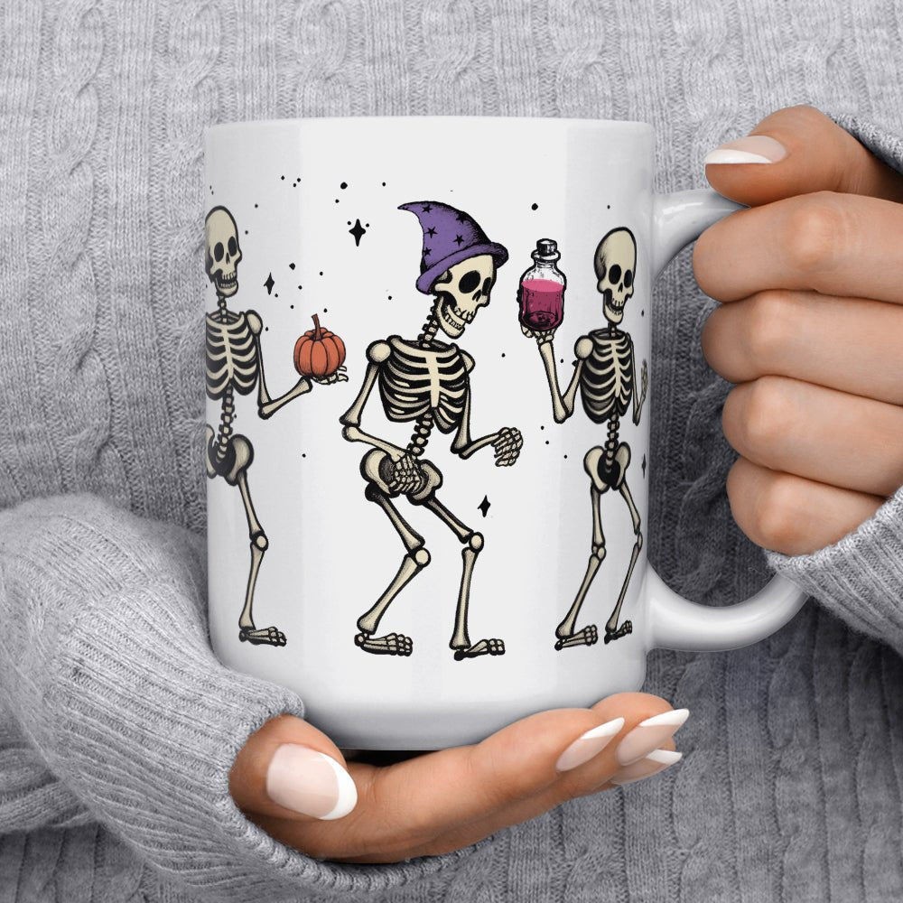 The perfect companion for spooky season! Our Dancing Skeletons Mug will show the world you're serious about Halloween fun! Choose 11oz or 15oz and enjoy your favorite hot beverage with some bone-chilling style.