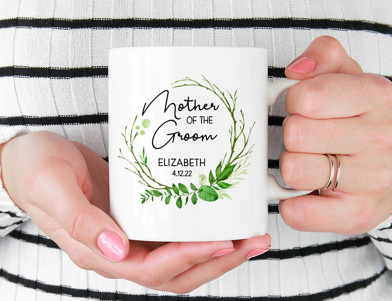 Our Personalized Mother of the Groom Mug makes a wonderful gift for the mother or future mother-in-law in your life. Add her name and the date of the ceremony and share with her how special it means that she can be there for your big day. Years down the road, she can fill her mug with her favorite coffee, tea, or hot chocolate and reminisce about the memories you all created that special day.